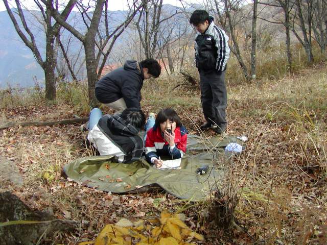 2001年11月18日、中学・高校ラジオ部は、東京都西多摩郡檜原村 松生山(727m)に生物部と共に移動運用しました。なお、前日は、小岩の城北檜原山荘に宿泊しました。